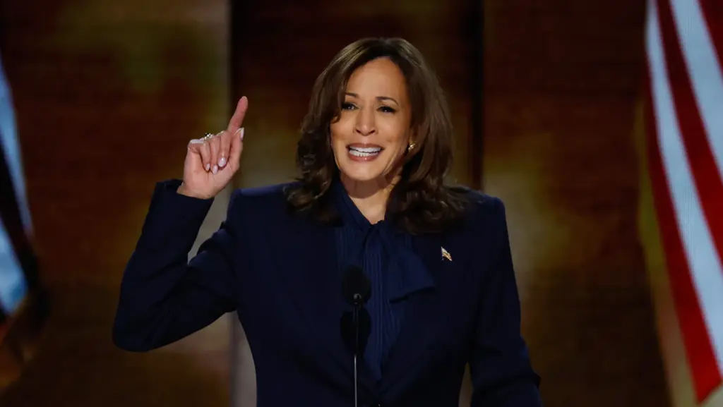 Vice President and Presidential Nominee Kamala Harris addresses the Democratic National Convention (Getty Images)