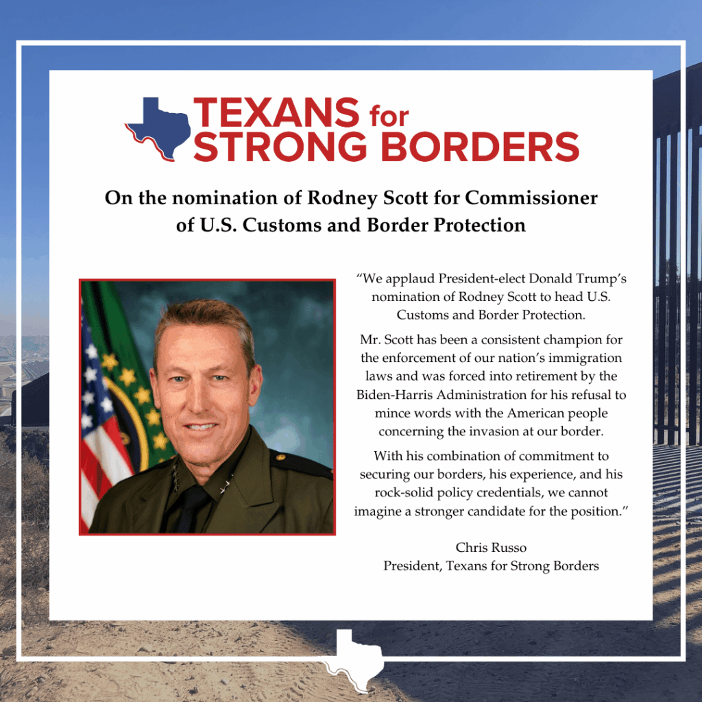 Texans for Strong Borders is a non-profit that relies completely on support from patriots like you to continue fighting for America First border security and immigration policies and educating citizens about how to advance our cause.